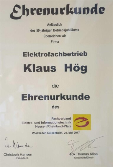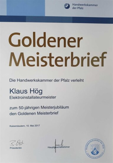 50 Jahre Goldener Meisterbrief und 50 Jahre Elektro Hög - Elektro Hög